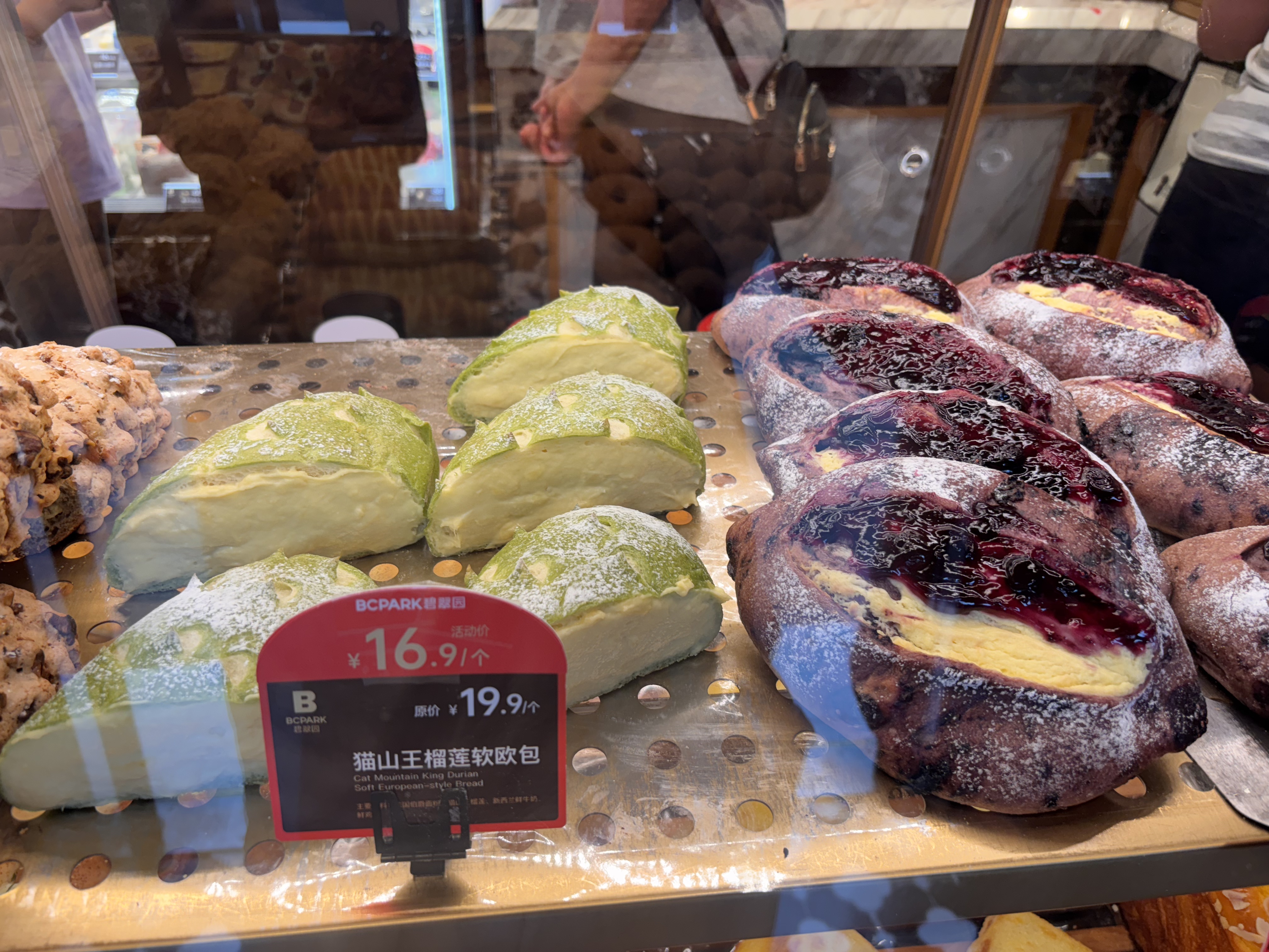下午去逛了念叨很久的迪卡侬。夏天快到了,备了两件健身短袖短裤。出来时路过欧宝,买了猫山王榴莲软欧和布丁面包